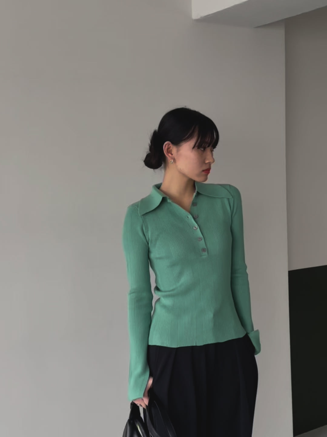 ビッグカラーハーフボタンリブニット セール価格¥7,920
